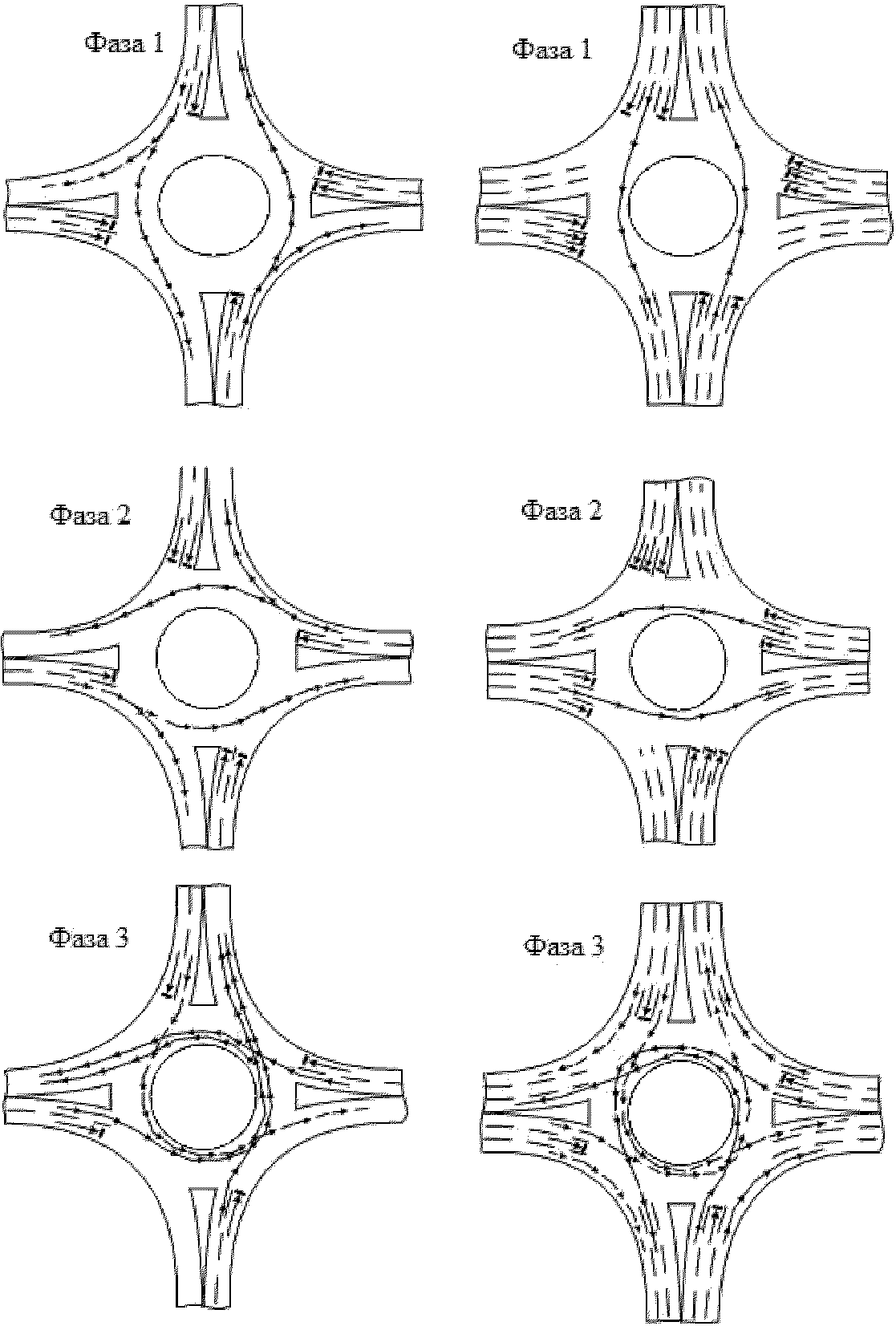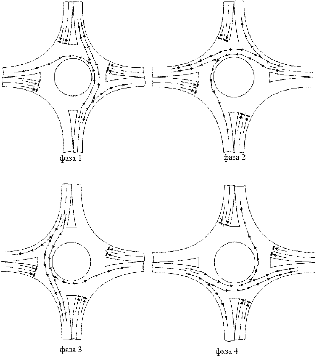 - возможность организации движения без светофорного регулирования при меняющихся соотношениях интенсивности движения по направлениям;