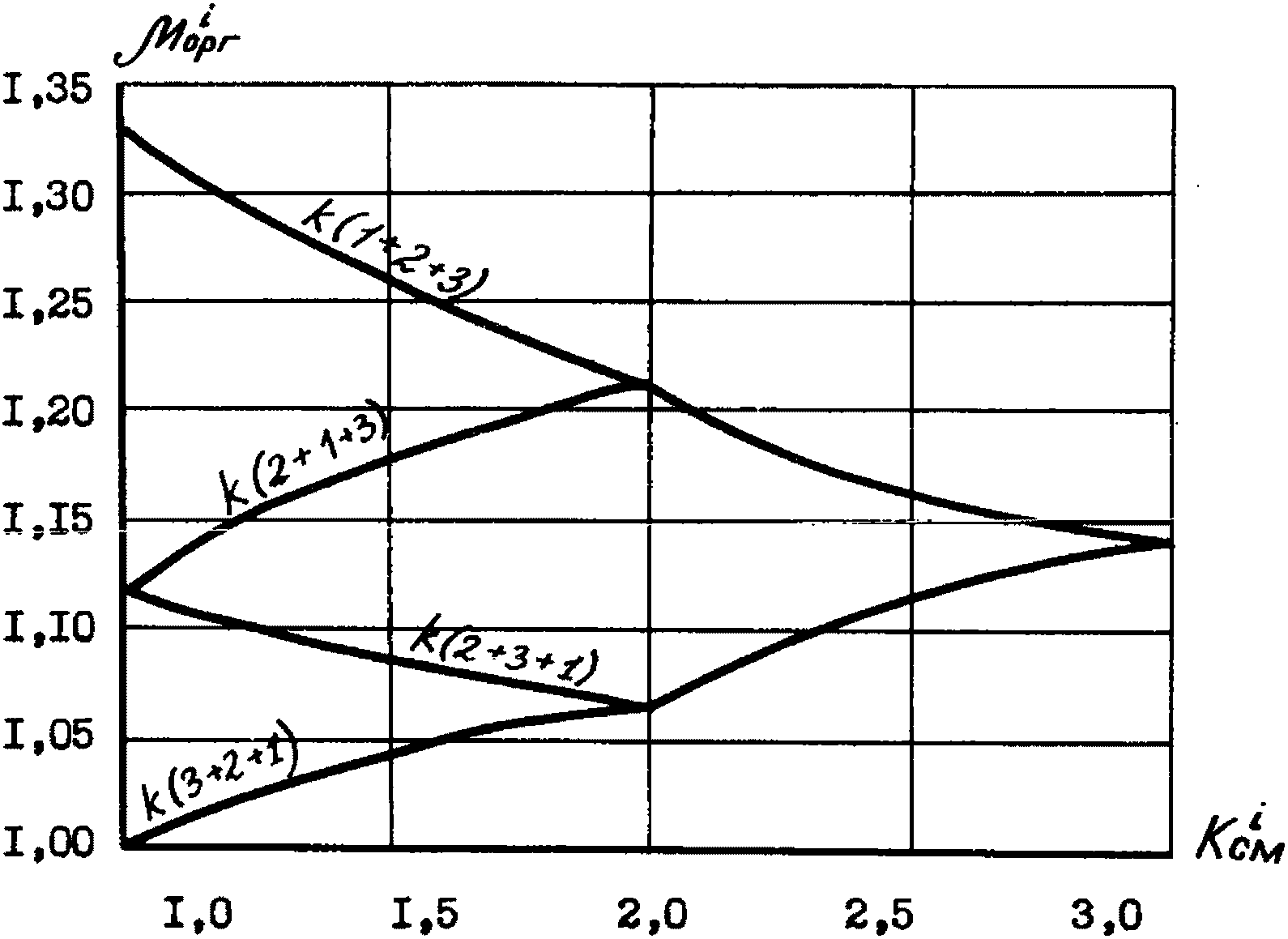 12] установлено, что результативность (производительность) ресурсов при их высокой концентрации при неизменном фронте работ снижается. Это ведет к увеличению затрат на производство работ. Поэтому уже на стадии разработки организационно-технологических решений в ПОСр необходимо определить степень снижения производительности трудовых и технических ресурсов при повышении их концентрации на ограниченном фронте работ (в пределах остановочной единицы реконструируемого цеха или производства).