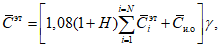 2.3. Себестоимость осуществления проектного решения С следует определять на основе системы расчетных показателей и коэффициентов, отражающих специфику метода строительства, высоту возводимого здания и при необходимости региональные условия строительства (природно-климатические условия, состояние и характеристику производственной базы и т.п.). Себестоимость, характерная для i-го варианта С, руб., учитывает весь комплекс расходов, связанных с изготовлением и транспортированием на строительную площадку конструкций и полуфабрикатов, монтажом (возведением) конструкций, и определяется на принятую единицу измерения по формуле