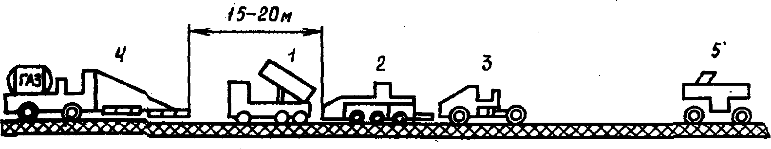 Дистанция между ведущей машиной основного потока и терморазогревателем - не менее 15 м.