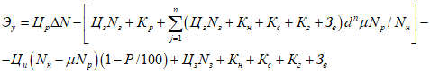В расчете на 1 м2 общей площади квартир при одинаковой его стоимости в новом и реконструированном доме с учетом стоимости земли формула расчета условного эффекта для варианта реконструкции без отселения жильцов будет выглядеть следующим образом: