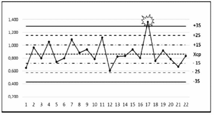 Xср +/- 1S - контрольный предел - "1 среднеквадратическое отклонение";