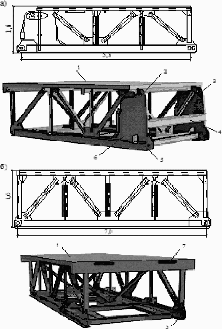 5.1.1 Конструктивно штатный комплект САРМ позволяет собирать мосты с пролетами от 18,6 до 32,6 м (шаг изменения длины пролета 7 м) и габаритом проезжей части 4,2 и 7,2 м для пропуска автомобилей массой до 13 т (Н-13) и гусеничных транспортных средств массой до 60 т (НГ-60).