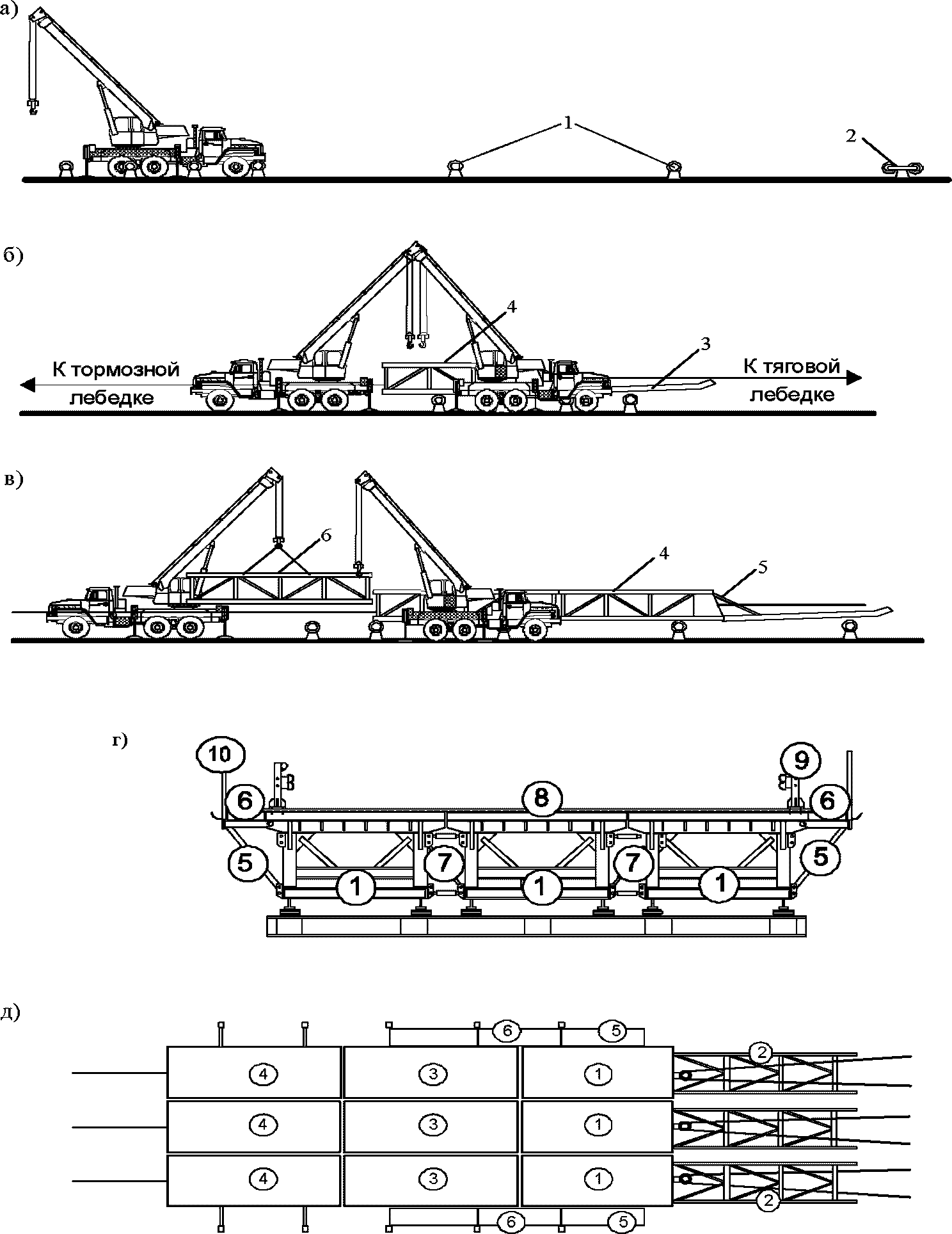 5.2.3 Пролетные строения устанавливаются на шпальные клети береговых опор и опорные тележки промежуточных опор.