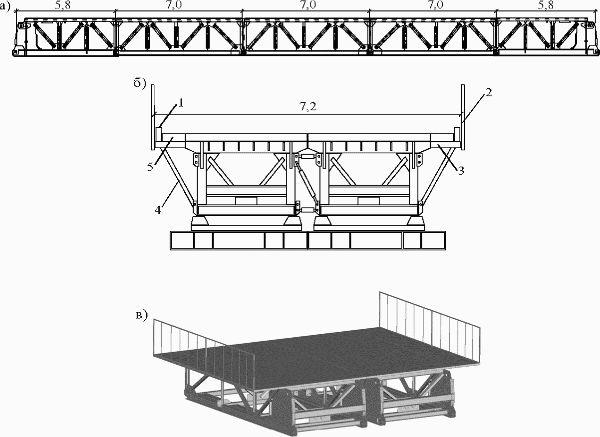 и вид сверху (д) пролетного строения однопутного моста