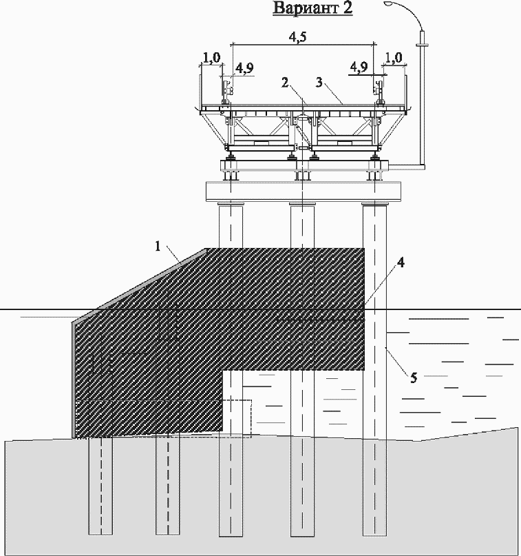 5.3.5 Для защиты опор моста от ледохода, как правило, применяют ледорезы на свайном основании. Верх конструкции располагается выше горизонта наивысшего уровня ледохода на 1 м.