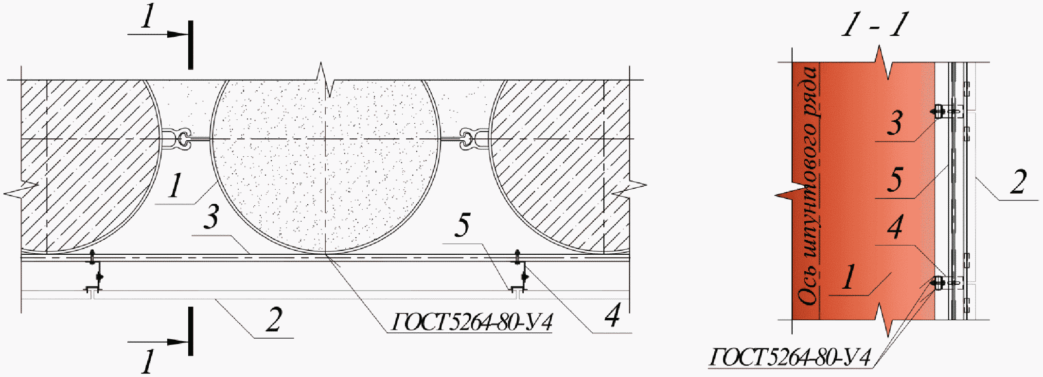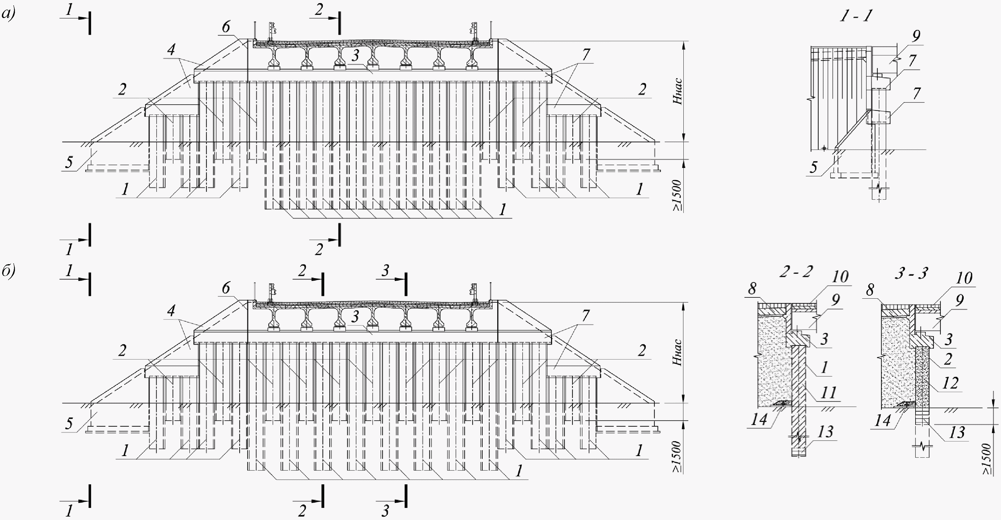 1 - подпорная стенка из ШТС; 2 - оголовок устоя;