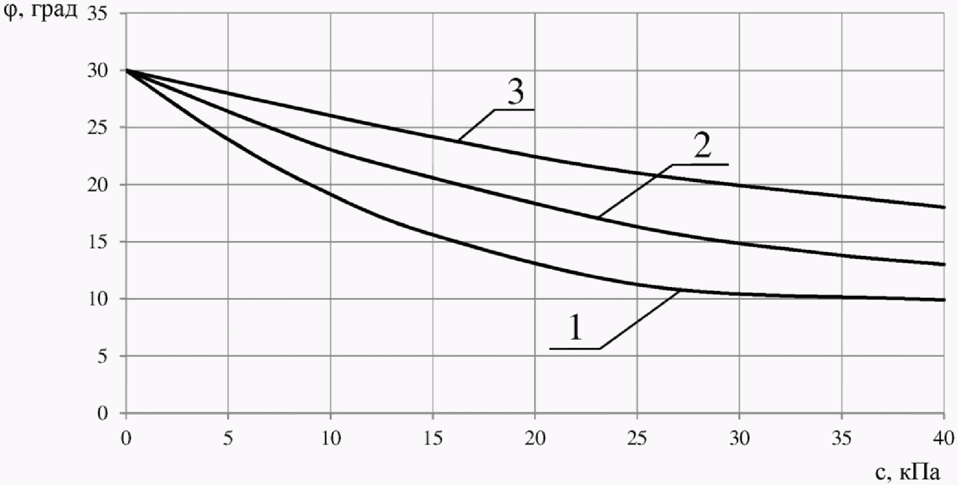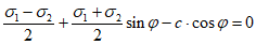 Примечание - В алгоритмах и программах МКЭ сжатие считается отрицательным направлением напряжений. В связи с этим в описаниях и решениях упругопластических задач уравнение Мора-Кулона используется в записи