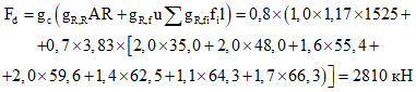 N = 1076,3 + 1,1 x (3,8 + 11,8) x 1,17 x 24,53 = 1569 кН