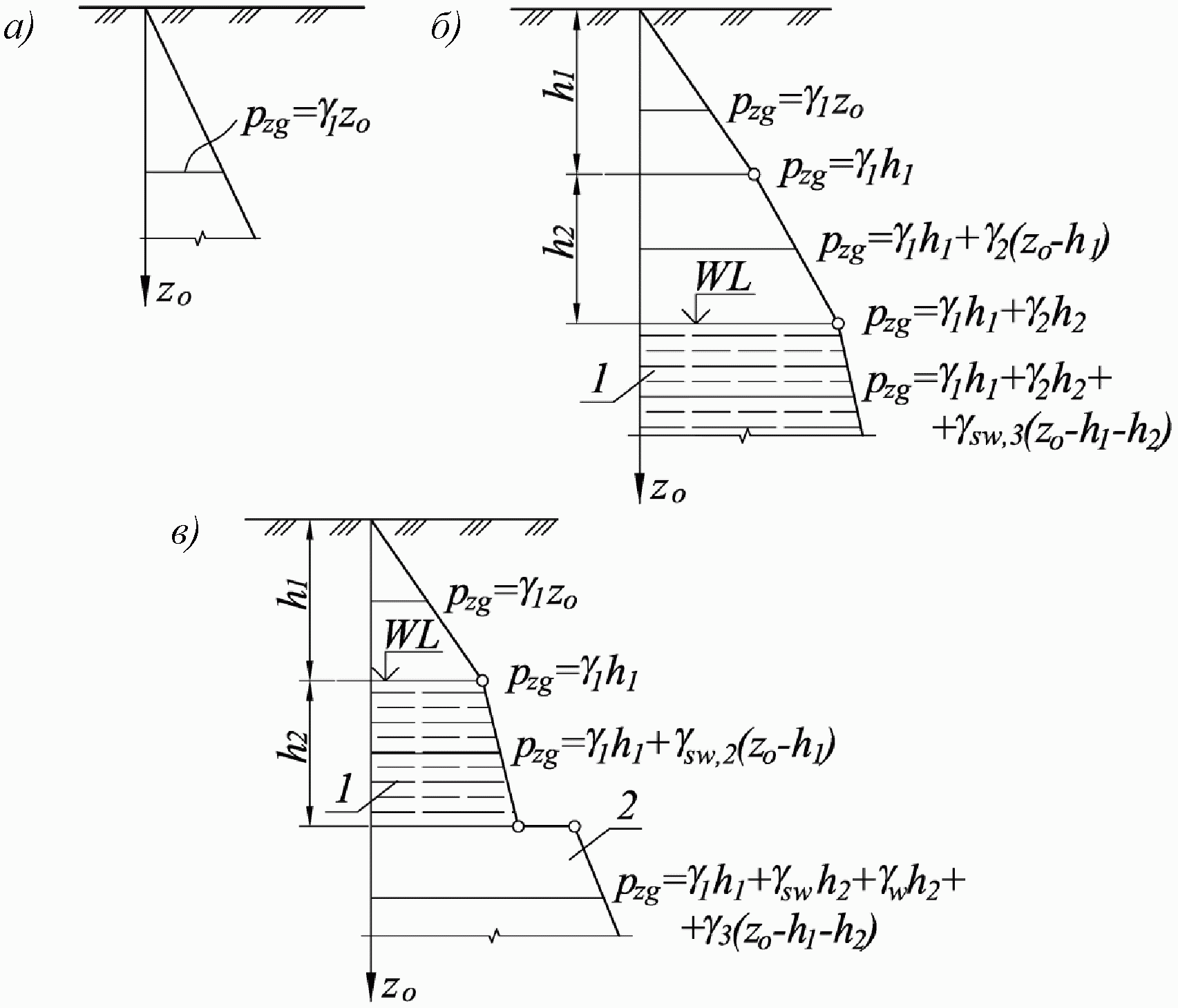 pzg - вертикальное давление (напряжение) в основании, определяемое по