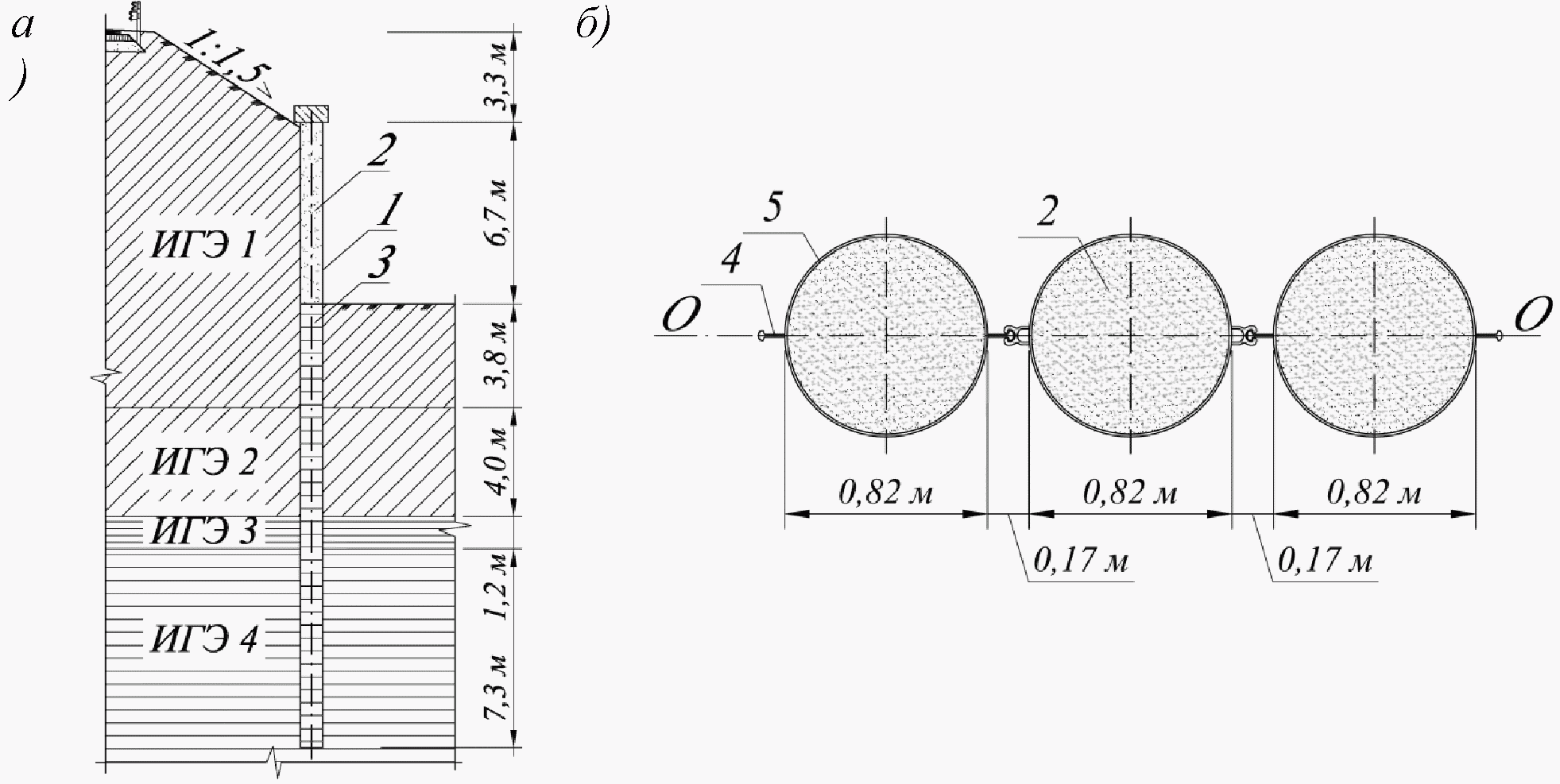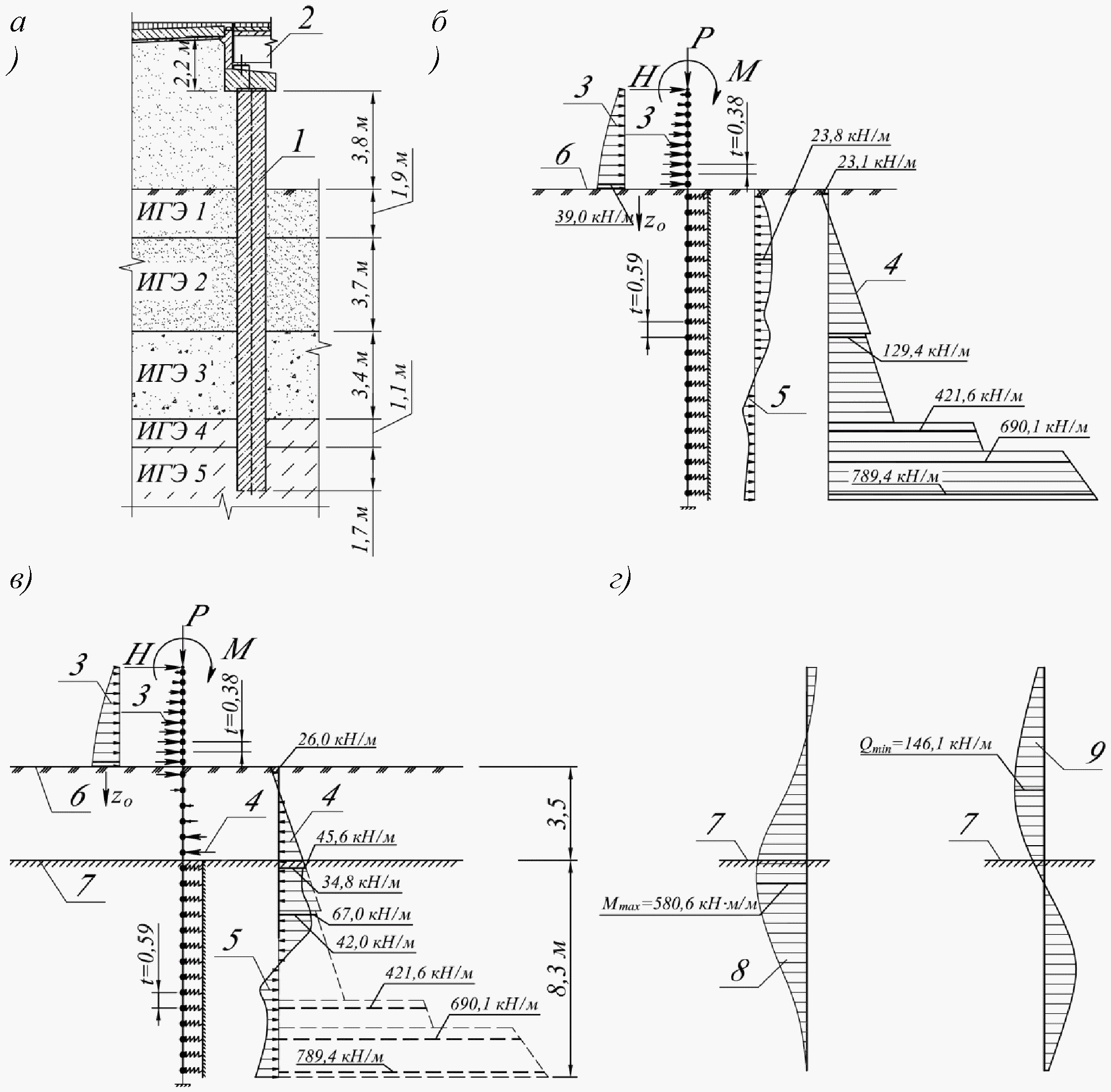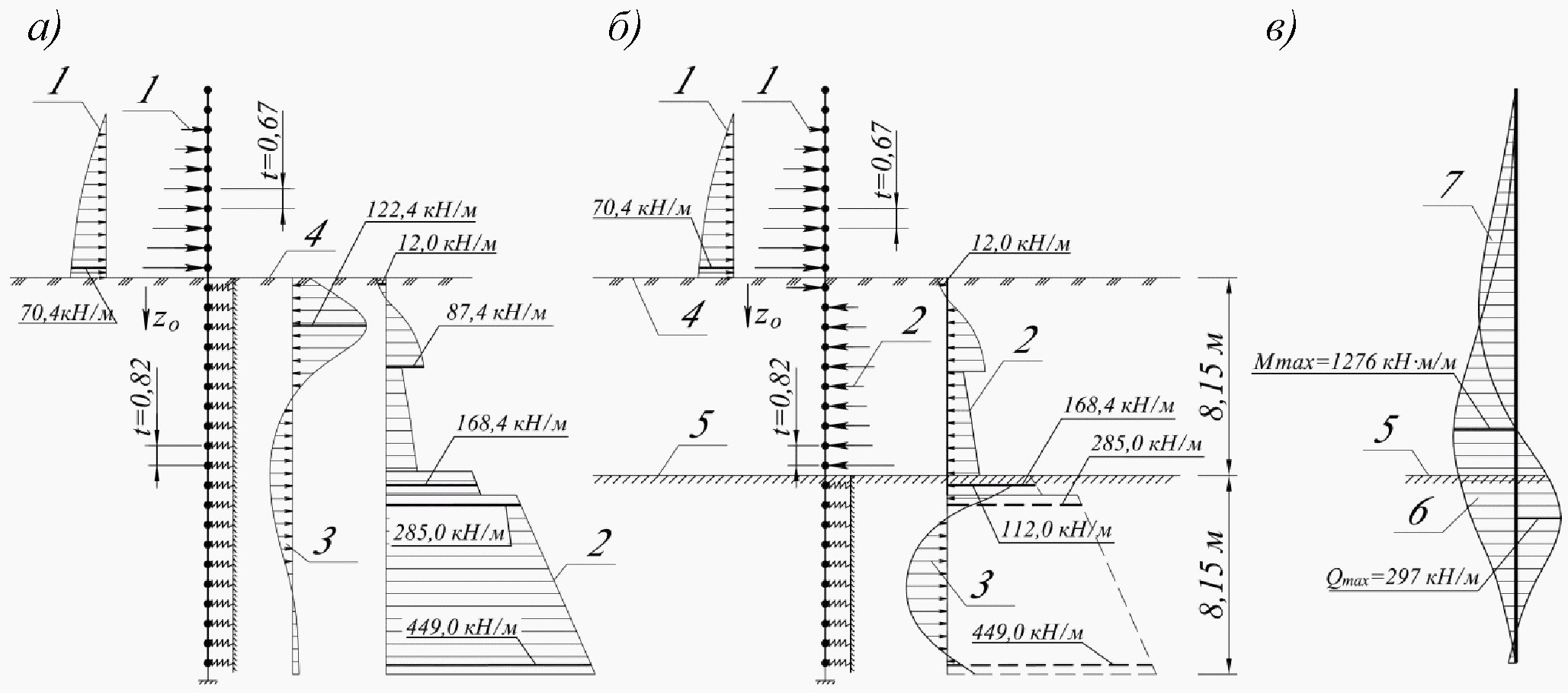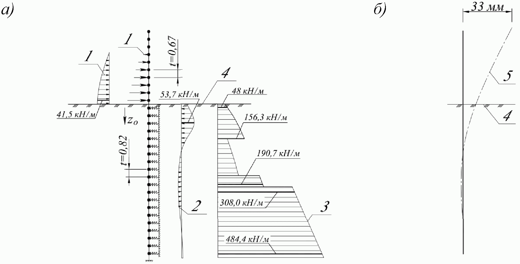 - определение продольной силы в трубах шпунтовой подпорной стенки.