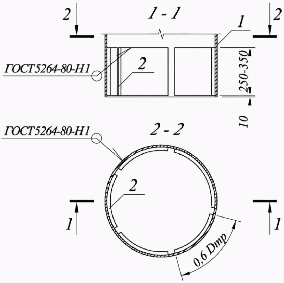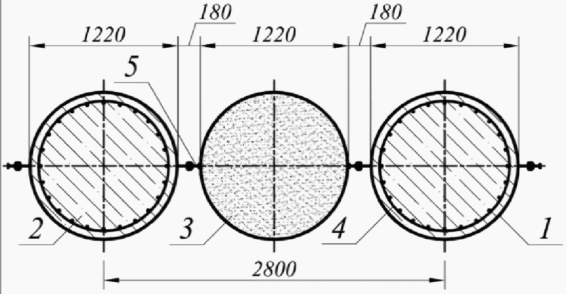 3.9 сварной трубчатый шпунт: Шпунтовая стена, состоящая из стальных трубчатых сварных шпунтовых свай. Трубчатая сварная шпунтовая свая состоит из стальной трубы и приваренных к ней замковых соединений.