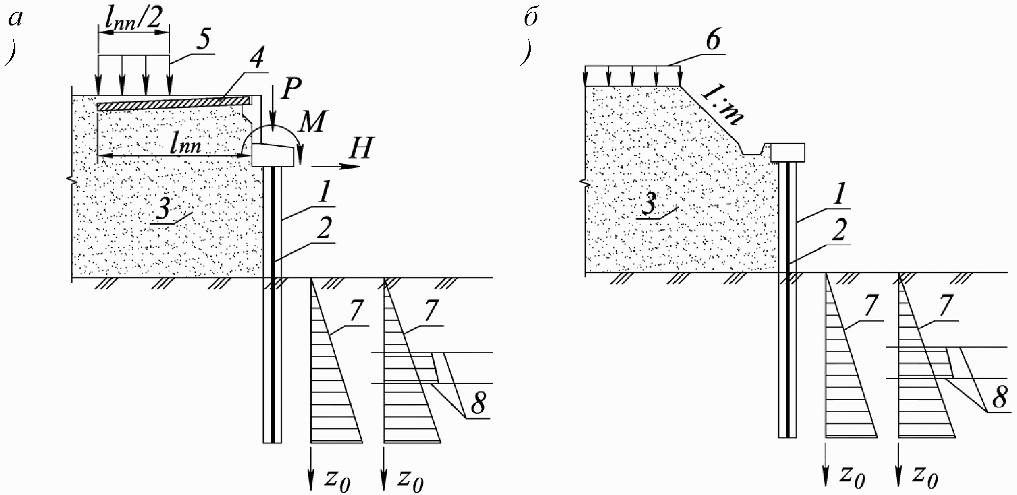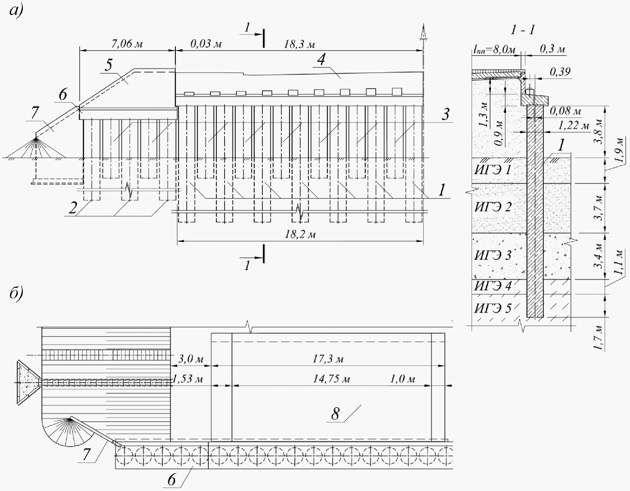 3.8 подпорная стенка шпунтового типа: Разновидность стальных или железобетонных изгибаемых подпорных стенок, состоящих из воспринимающей горизонтальное давление грунта надземной части и заделанной в основание подземной (заглубленной) части.