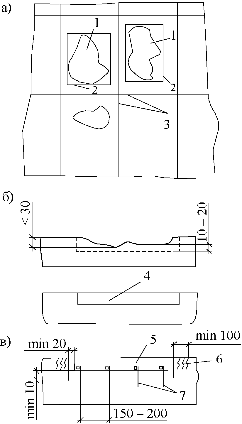 3.3.8 Плиты с очень сильной степенью обрушения кромок рекомендуется ремонтировать (до герметизации швов) с помощью специальных цементно-минеральных быстротвердеющих смесей.