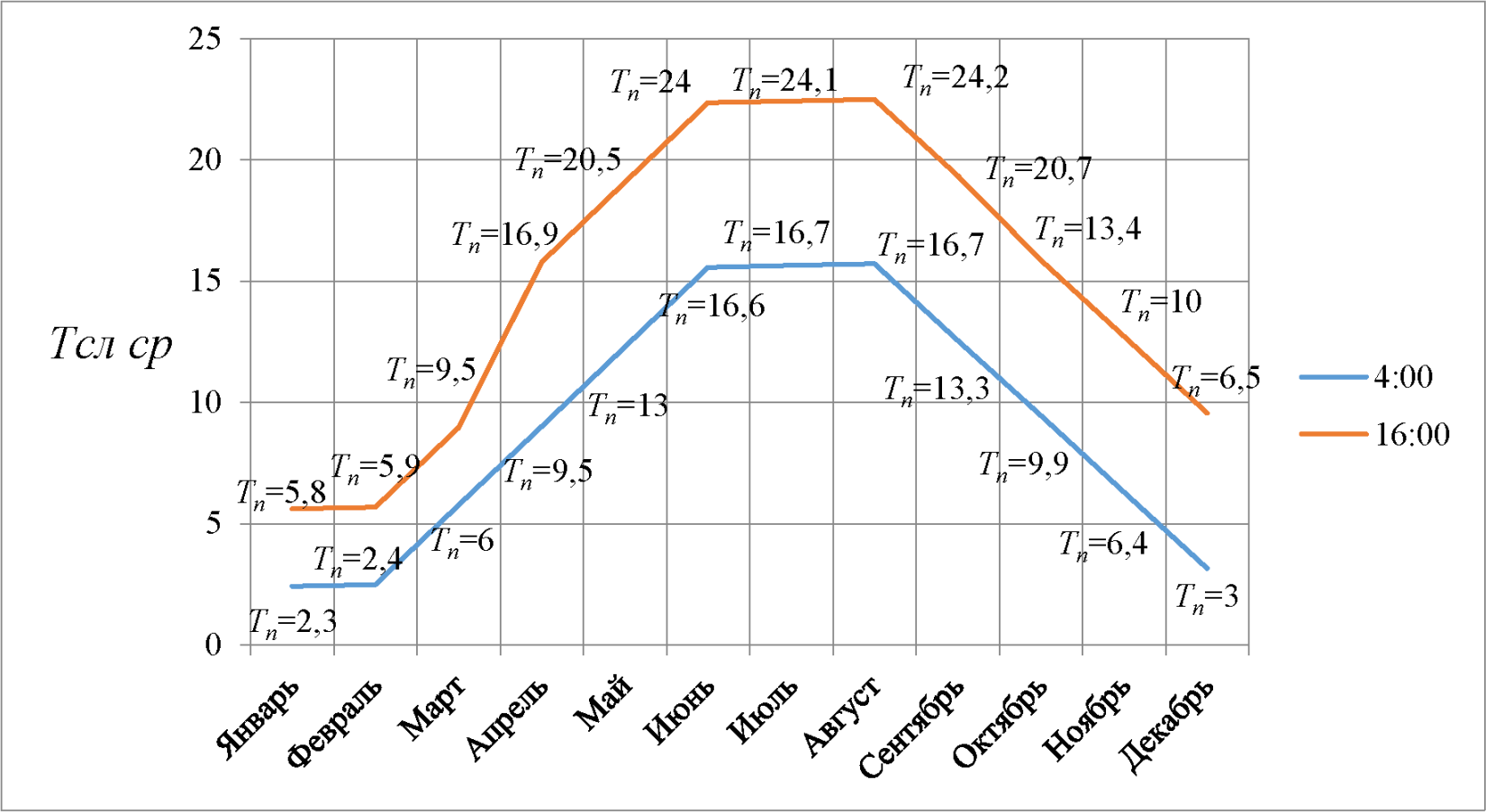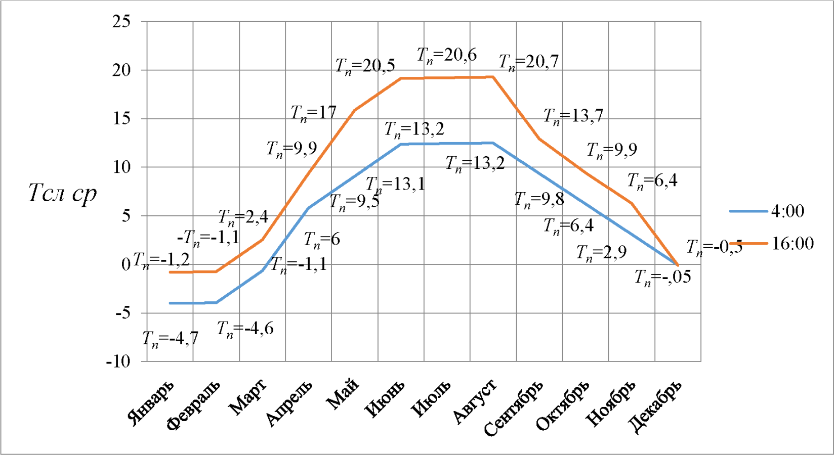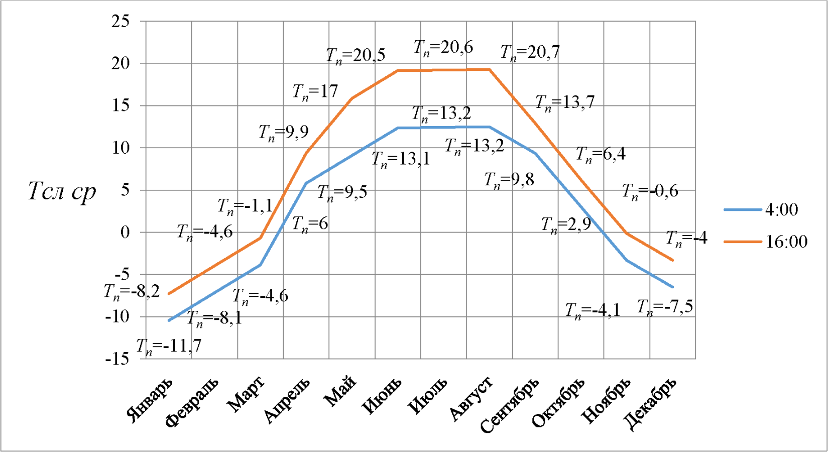 3.10 синусоида колебания среднемесячных температур: плоская кривая, отображающая на графике изменение средних температур месяцев.