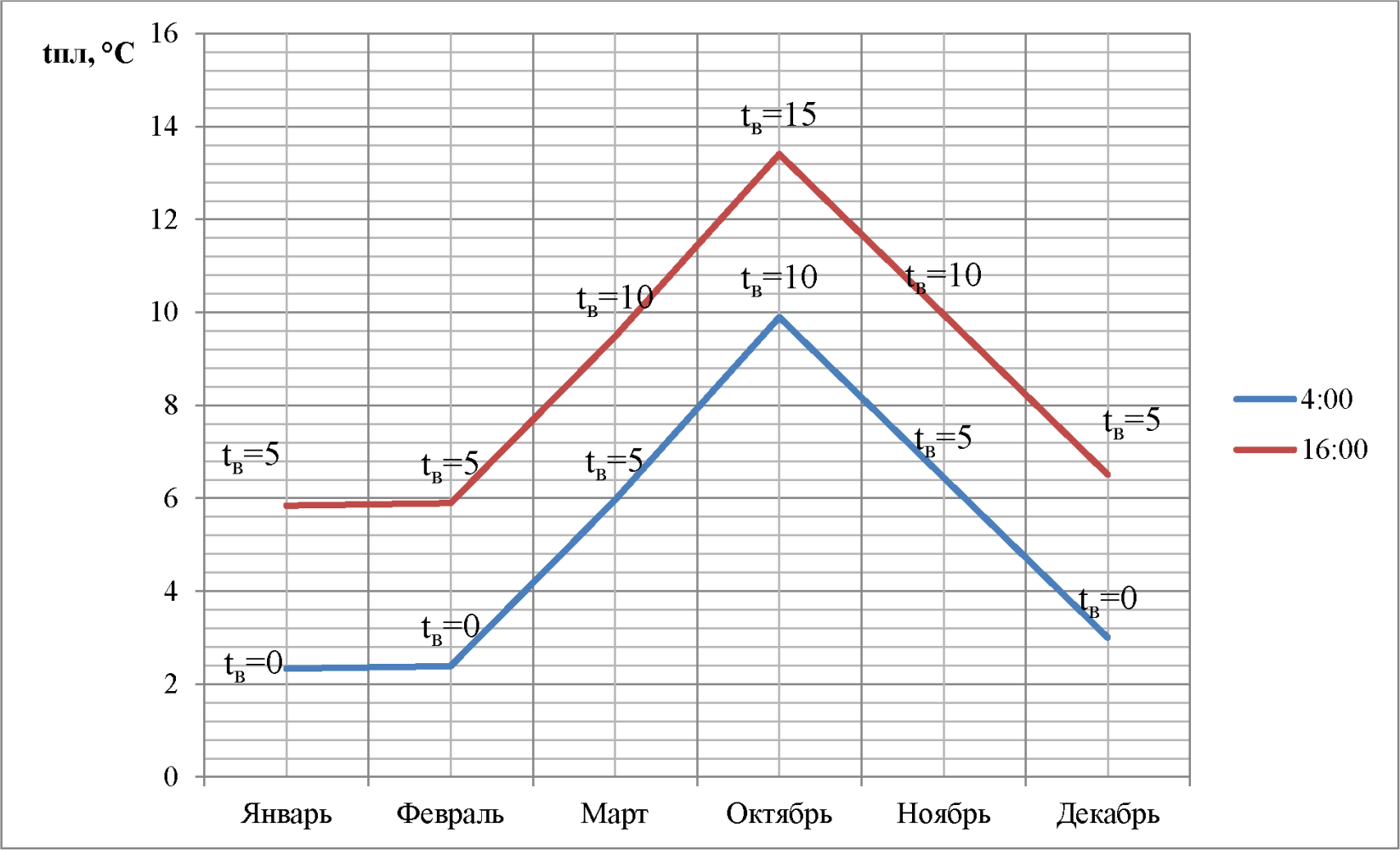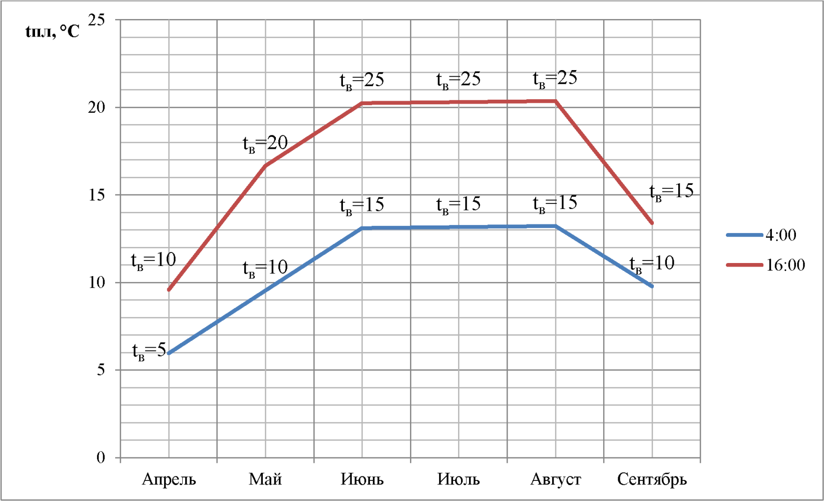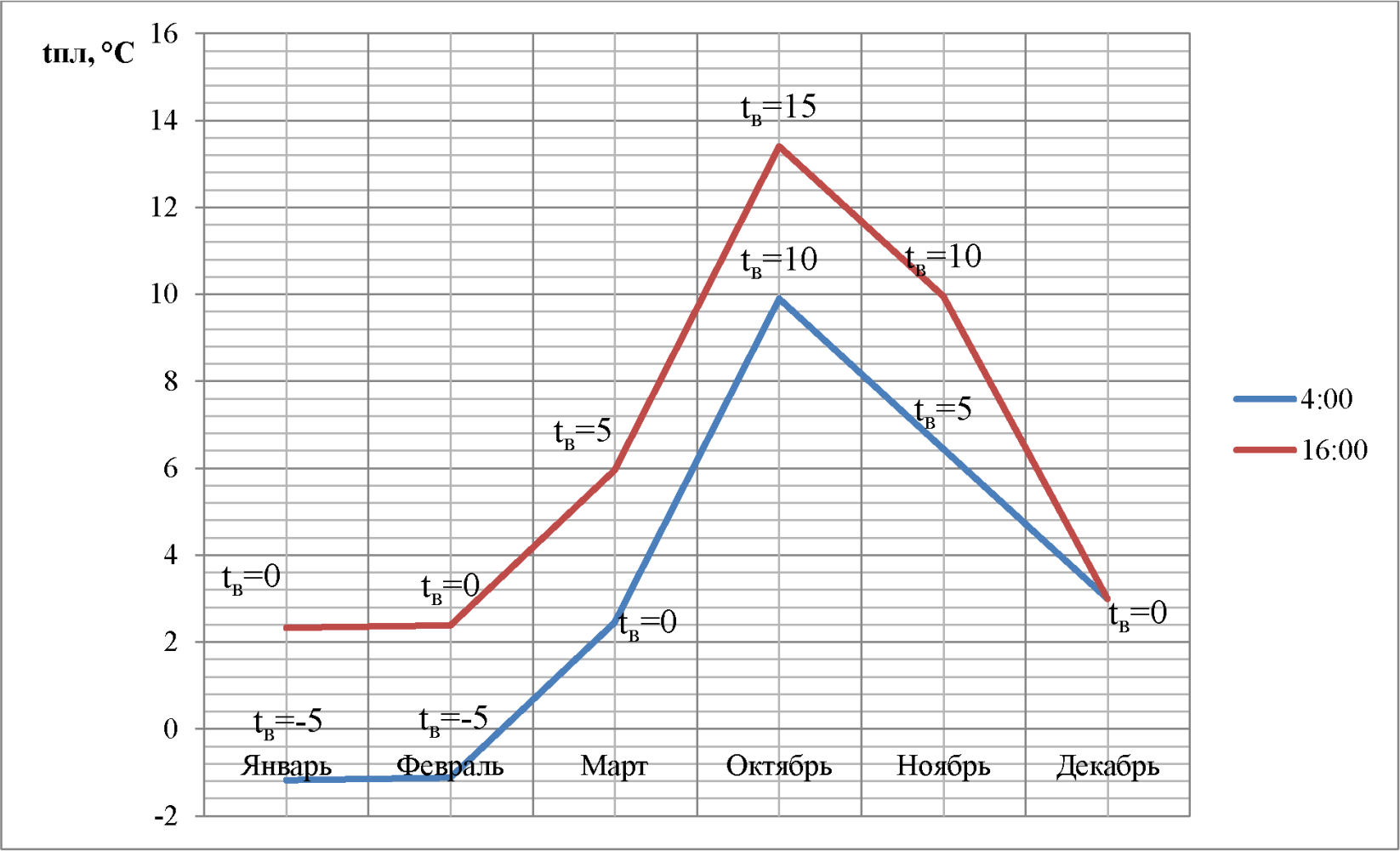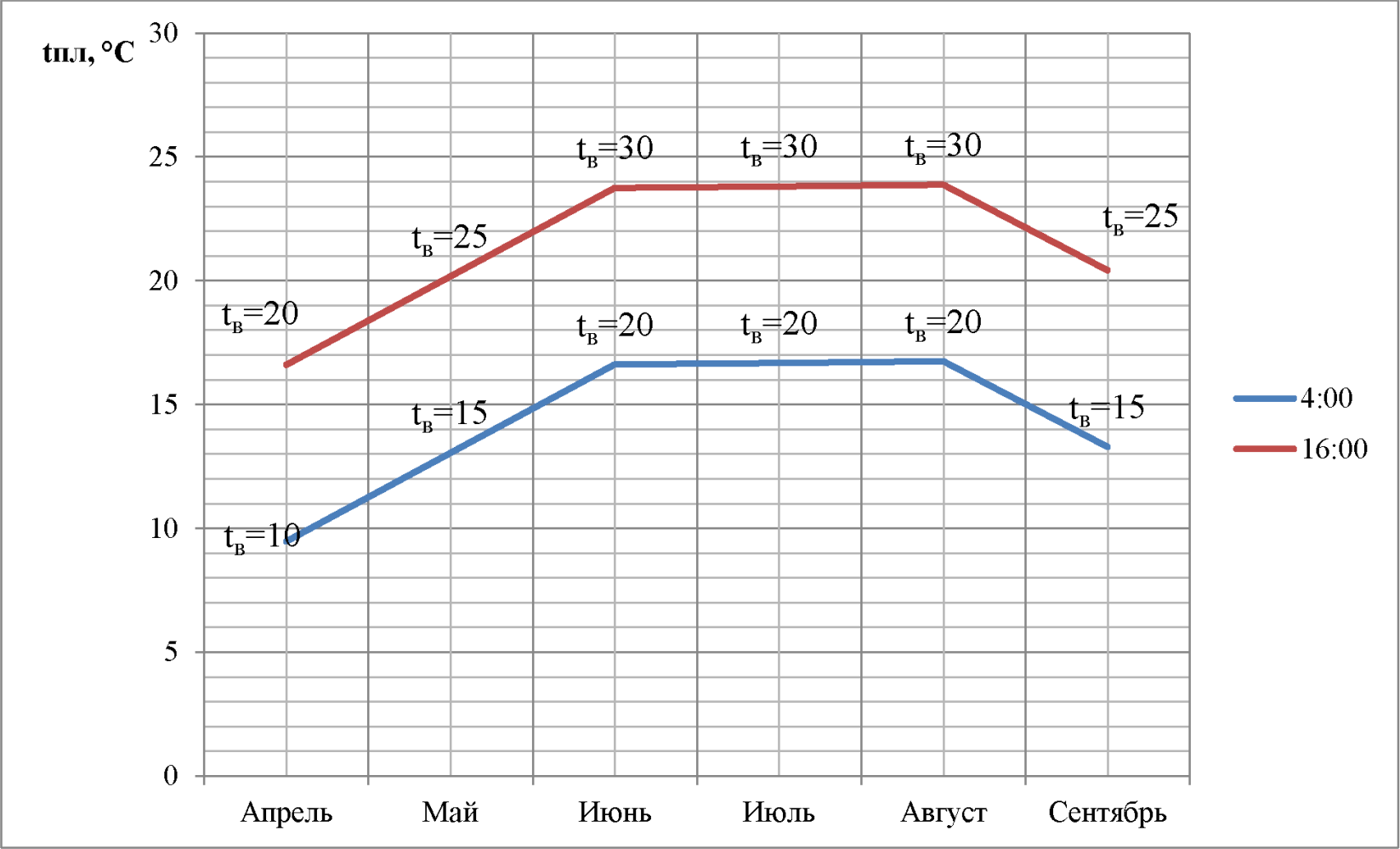 и для этого периода времени определяют разность температур между внутренней