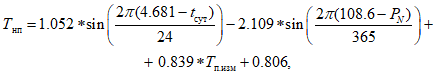 Tнп - температура нижней поверхности покрытия (прогнозируемая);