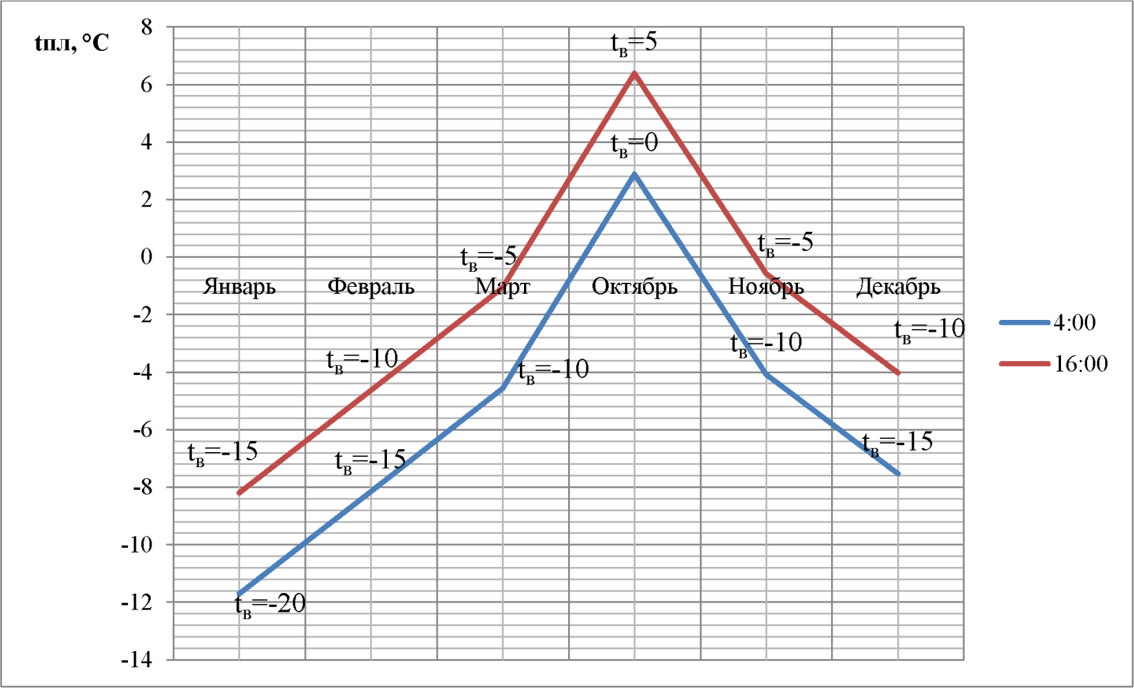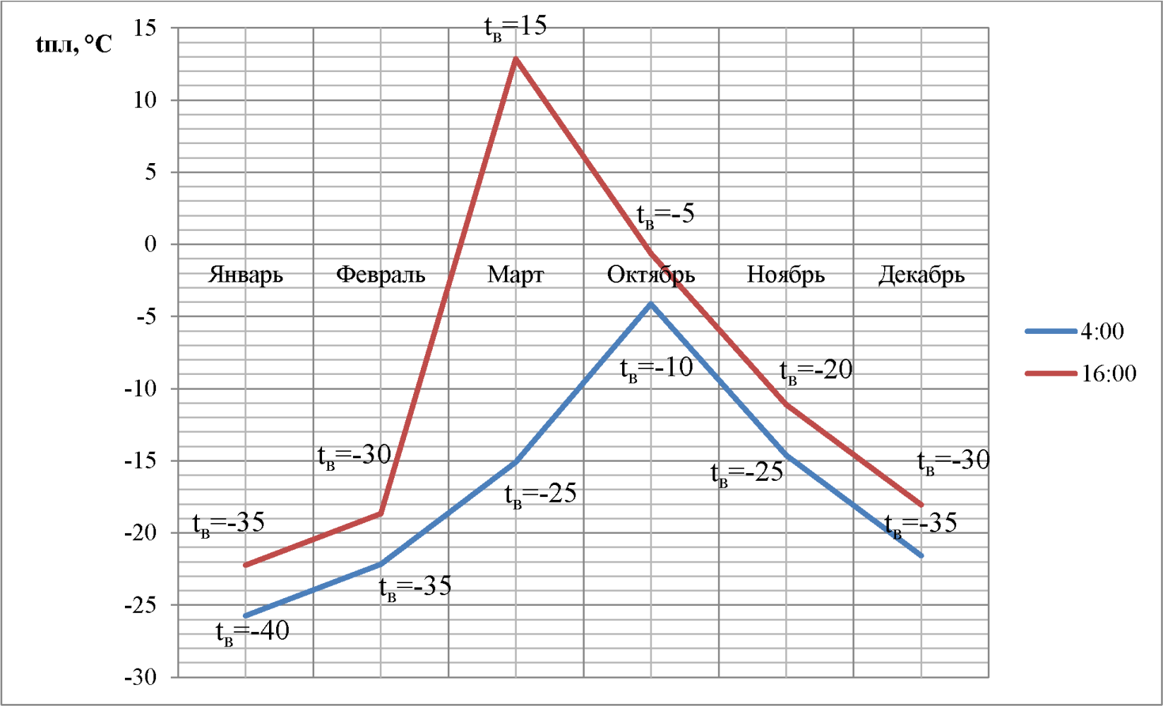 Ноябрь | -20,0 | -15,9 | 0,9 | 5,1 | -7,4 | -3,3 | 5,1 | 9,3 | 5,1 | 9,3 |