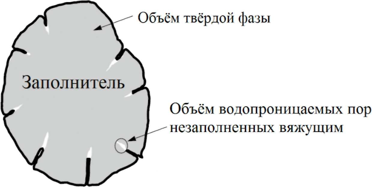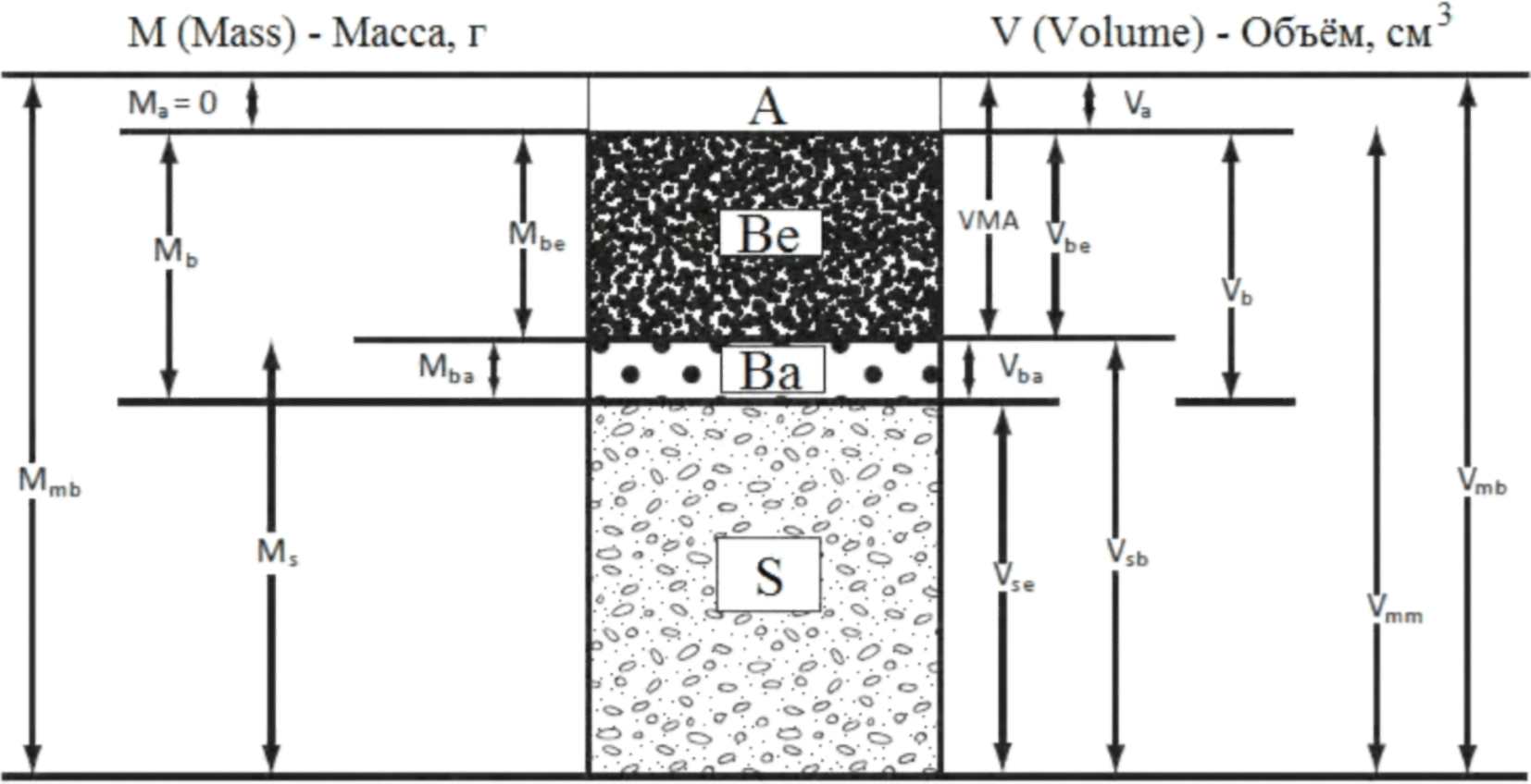 рисунке 2. При такой демонстрации смесь разбивается по компонентам: воздух, эффективное вяжущее (неабсорбированное), абсорбированное вяжущее и заполнитель.
