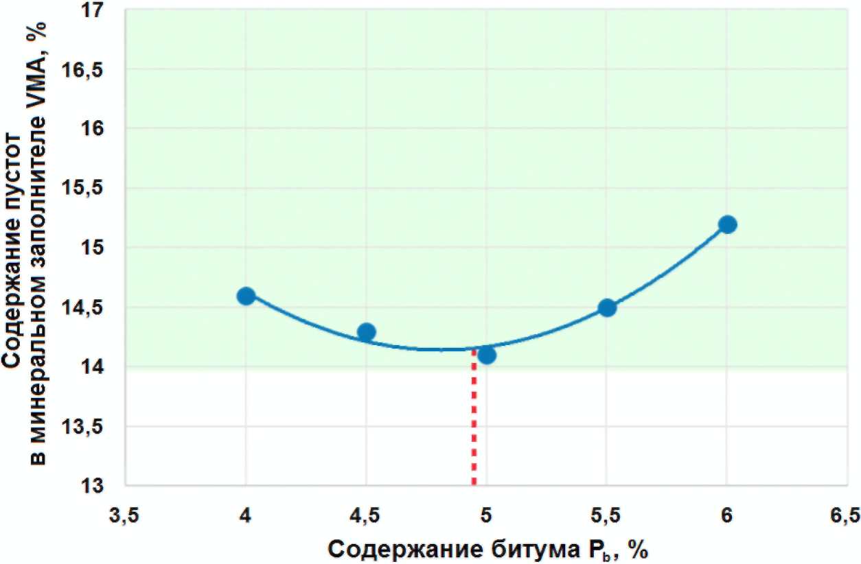 - содержание пустот в минеральном заполнителе VMA для каждого содержания битумного вяжущего, %;