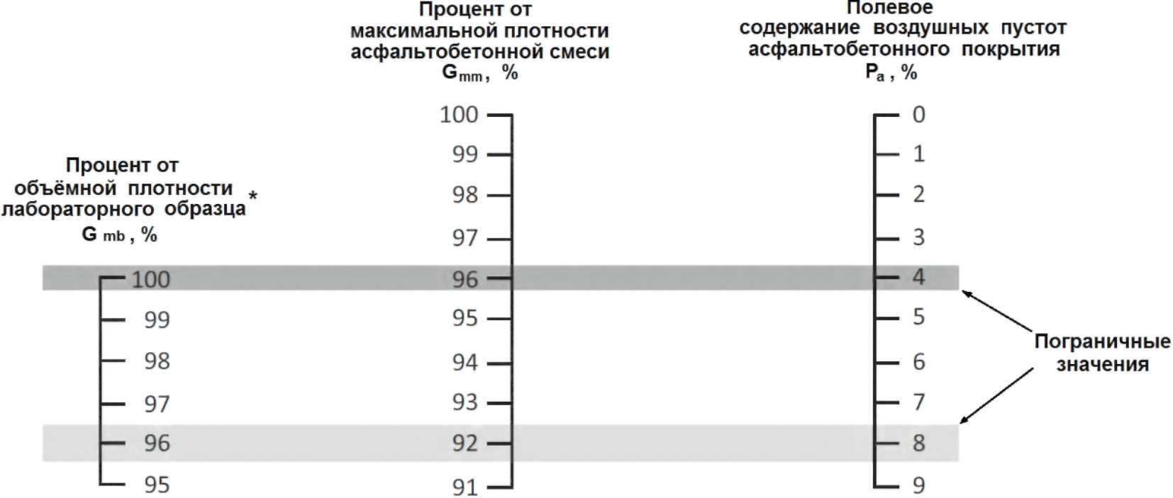 - объемная плотность всех уплотненных образцов с расчетом среднего значения Gmb для каждого содержания битумного вяжущего, г/см3;
