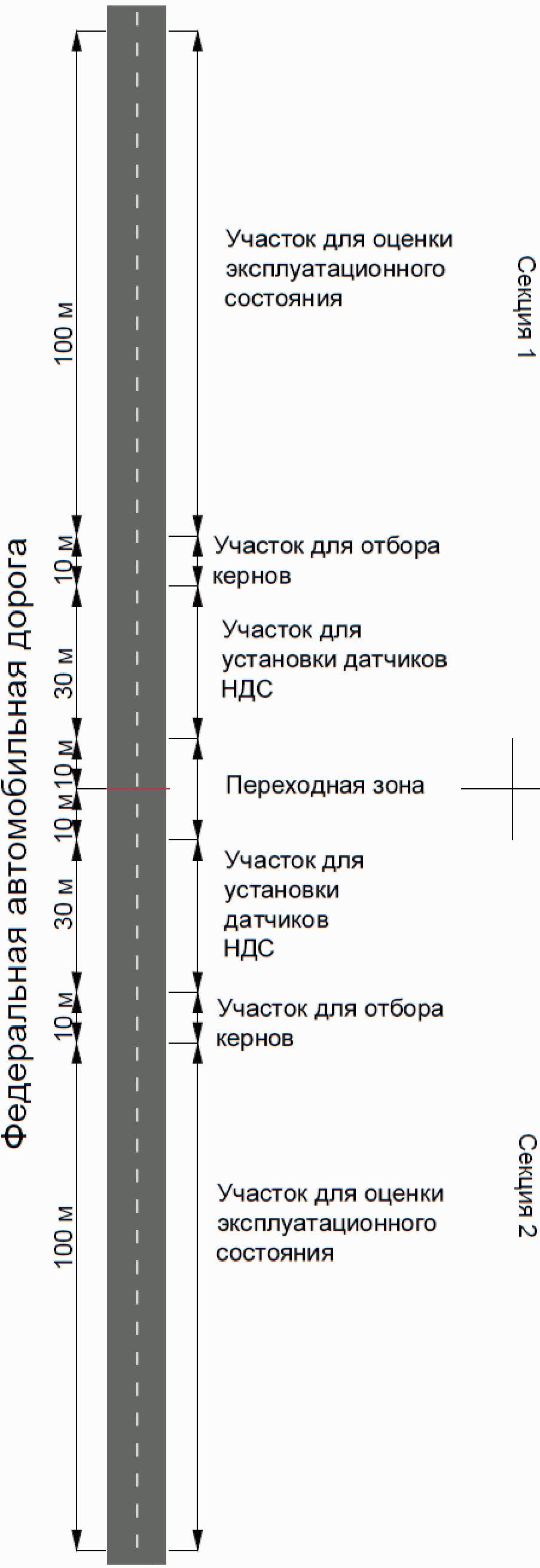 5.4 В общем виде опытно-экспериментальный полигон должен состоять из последовательно расположенных участков освоения (текущего мониторинга) в виде линейных секций, размещенных на дорогах общего пользования