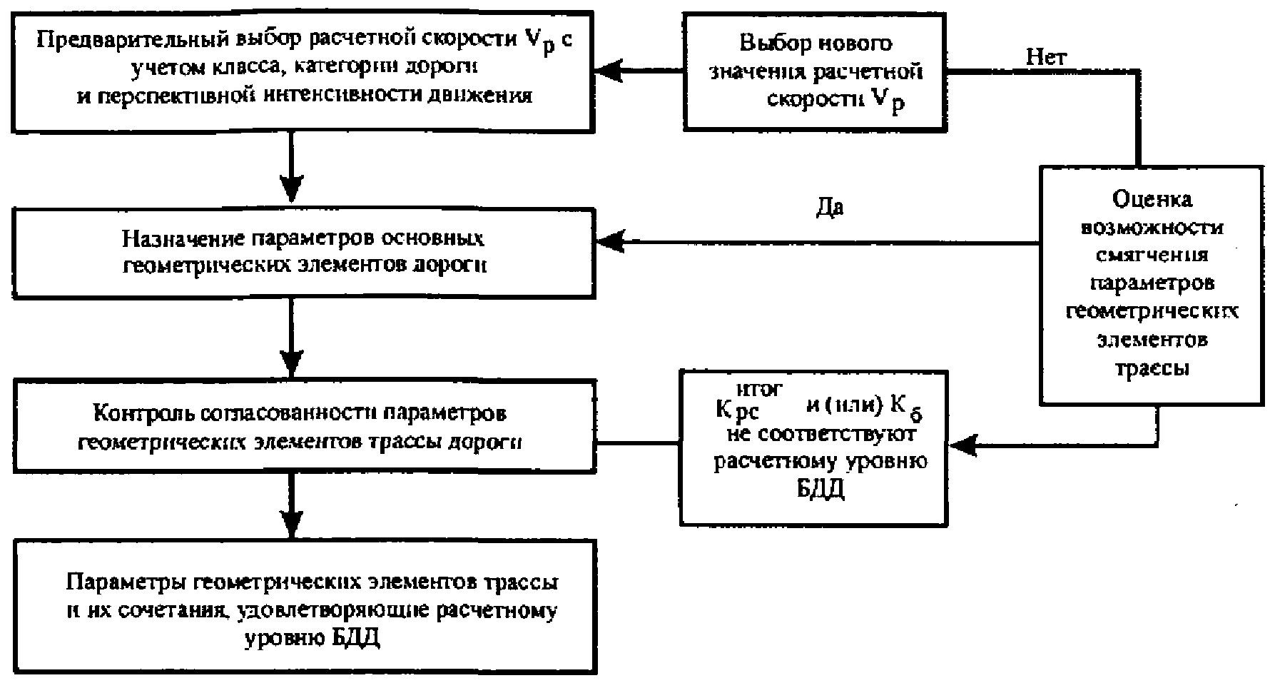 3.4 оценка безопасности движения при проектировании дорог: Элемент технологического процесса проектирования автомобильных дорог, направленный на обеспечение согласованности проектирования и прогнозируемого поведения водителя в целях минимизации риска возникновения дорожно-транспортных происшествий и тяжести их последствий на стадии эксплуатации автомобильных дорог.