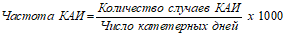 Этот показатель демонстрирует частоту катетер-ассоциированной инфекции за длительный период и удобен для ежегодного сравнения ситуации в динамике. Правила постановки диагноза и подсчета частоты КАИ подробно описаны в соответствующих методических рекомендациях и руководствах.