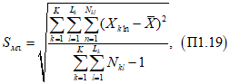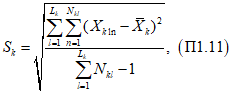 . Причем если проверка по критерию Фишера показала однородность соответствующих СКО, то внутрилабораторную воспроизводимость методики биотестирования вычисляют как средневзвешенное значений внутрилабораторной воспроизводимости на эталонных веществах по формуле: