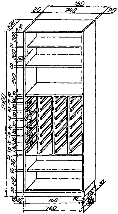 Основу (низ) навесной полки составляют 8 каталожных ящиков для картотек. Верх полки предназначен для хранения алфавитных папок с инструкциями и проспектами на препараты.