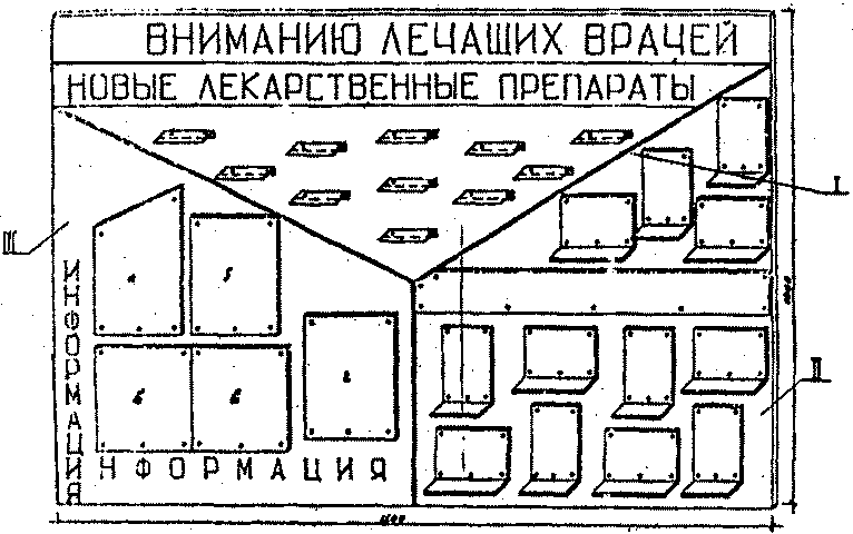 3. Во II части стенда расположена выставка препаратов по профилю при проведении "Дня врача" или выставка препаратов, недостаточно используемых врачами в лечебной практике. Образцы лекарственных препаратов размещаются по <...> полкам разм. 100 x 50 мм, выполненных из оргстекла.