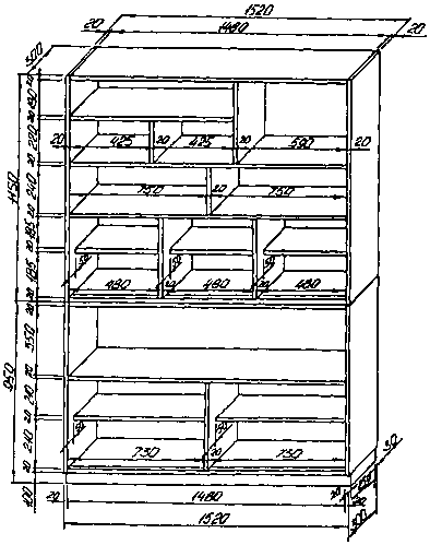 - низ тумб разделен пополам, где лицевая - передняя часть - предназначена для хранения папок-скоросшивателей по делопроизводству, вторая (задняя) половина тумб представляет собой с наружных сторон открытую нишу со съемной полкой, разделяющей нишу на 2 равные части, предназначена для хранения информационно-справочной литературы (справочники, книги).