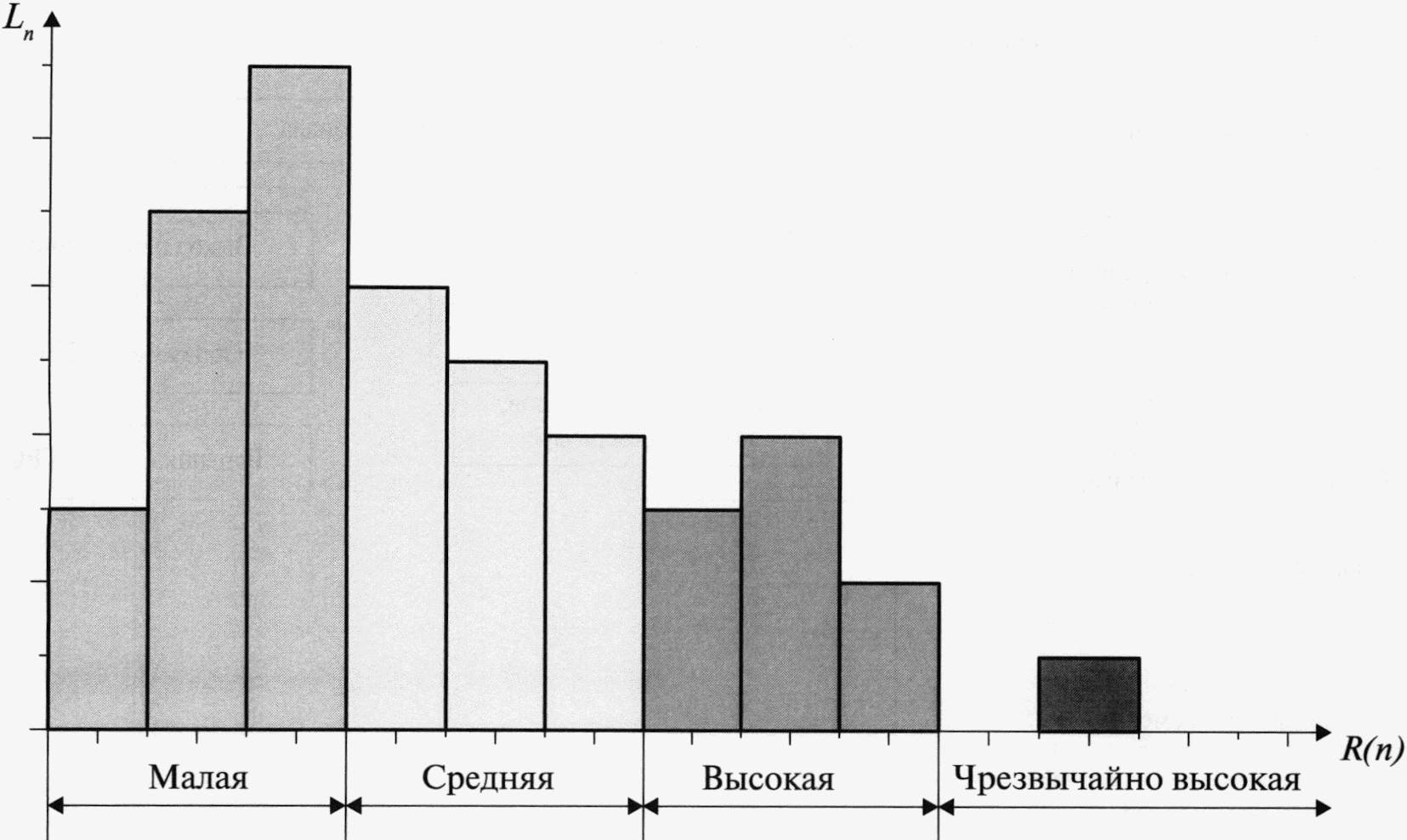 Показатель социального риска аварии (ЛЧ-19) представляется в виде графика ступенчатой функции, определяемой согласно