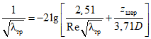 2 (в квадратичной зоне), коэффициент гидравлического сопротивления остается постоянным и равным значению