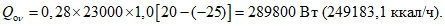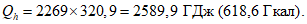 Потребляемая теплота складывается из количеств теплоты, требуемой на нужды отопления, вентиляции и горячего водоснабжения, ГДж (Гкал):