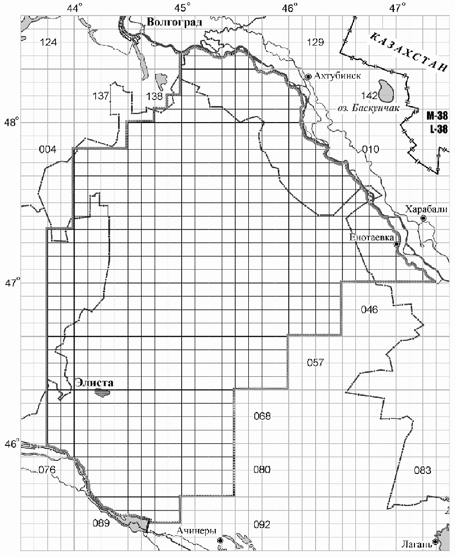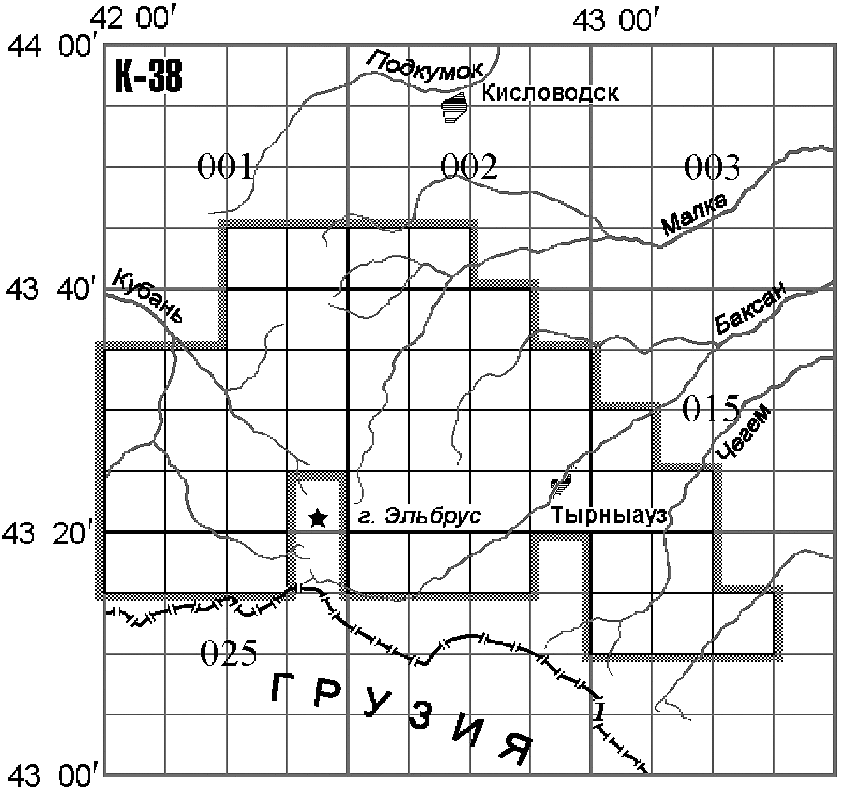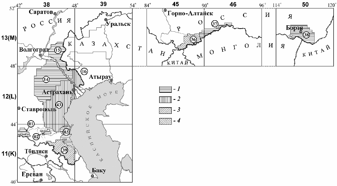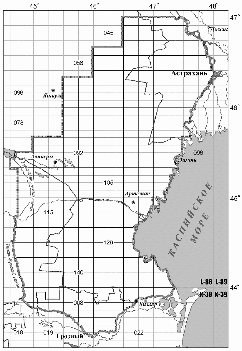 Руководстве по картографическим и картоиздательским работам. Часть 1. Составление и подготовка к изданию топографических карт масштабов 1:25000, 1:50000, 1:100000", латинские буквенные обозначения широтных рядов карт миллионного ("10-километрового") масштаба заменяют порядковыми номерами рядов, начиная с экваториального (первого) ряда А, последовательно двигаясь к северному полюсу. Ряды K, L и M, в пределах которых размещены природные очаги чумы Российской Федерации, имеют номера 11, 12 и 13 (ранее противочумные учреждения для этих рядов применяли номера 2, 3 и 4). Лист карты миллионного масштаба разделен на 144 листа 100-тысячного ("километрового") масштаба (от 001 до 144), внутри каждого из которых содержится 16 листов 25-тысячного ("250-метрового") масштаба. В общем виде нумерация листов карт указанных масштабов (и, соответственно, секторов) представлена на рис. 2.