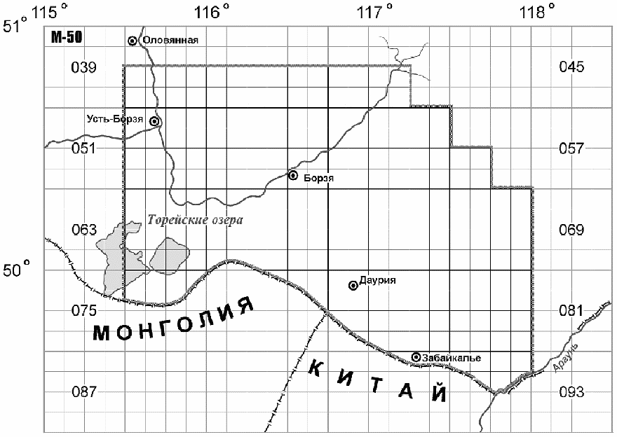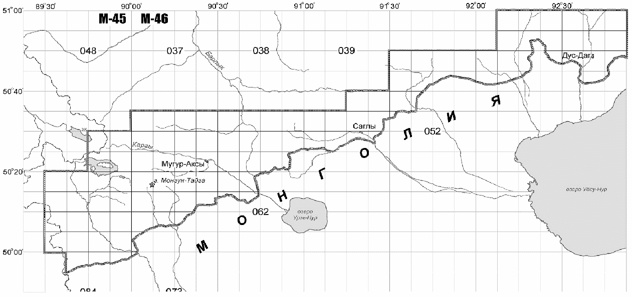м-ба 1:1000000; Б - листов карт м-ба 1:25000 (секторов)
