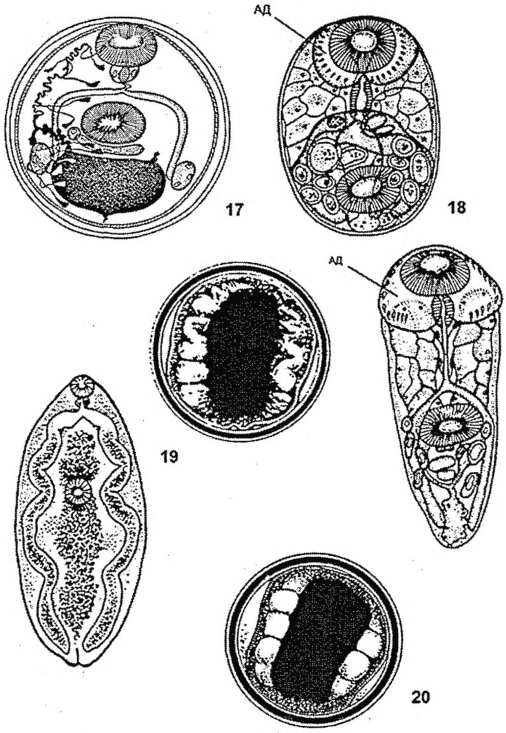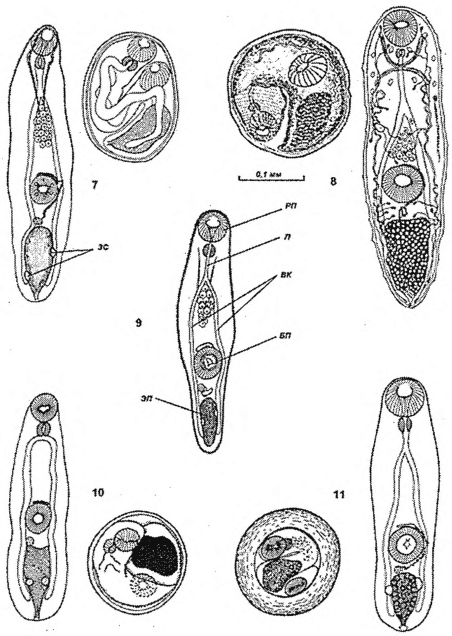 Рисунок 30. Личинки Opisthorchis felineus (фото ориг.,