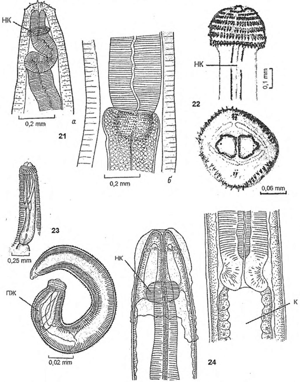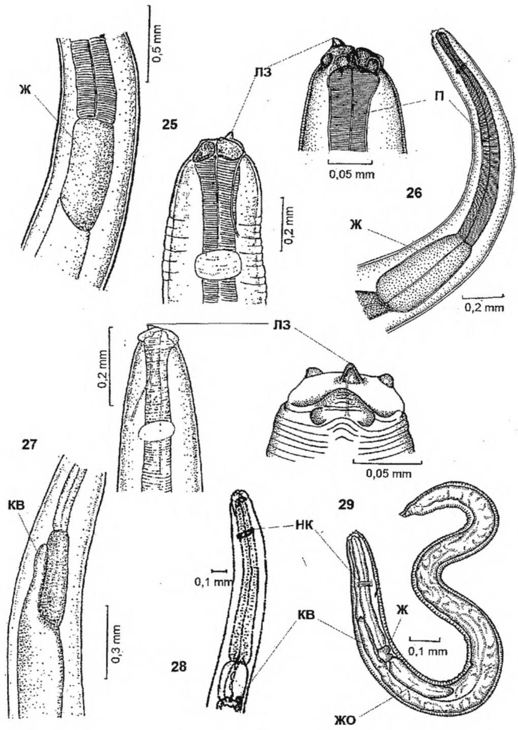 28 - Sulcascaris sulcata, larva III; 29 - Contracaecum