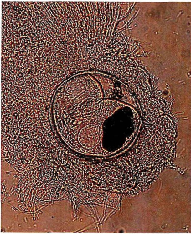 Рисунок 38. Плероцеркоид Dibothriocephalus latus в икре щуки