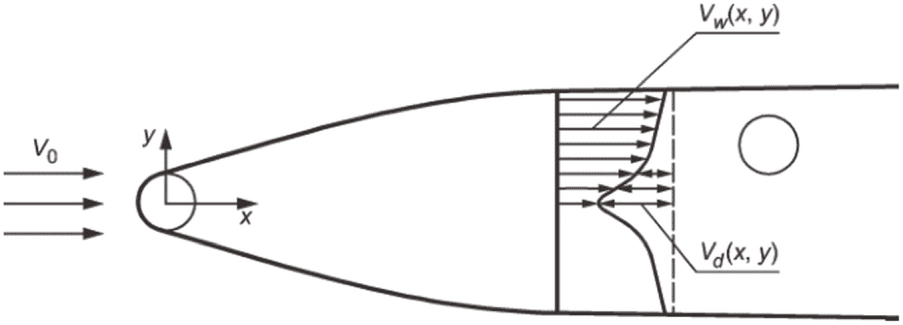Vd - сниженная скорость потока в волновом следе.