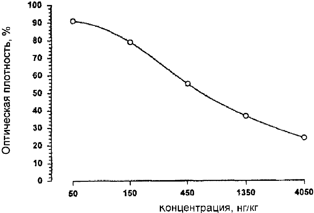 Оптическая плотность в лунках, измеренная на планшетном фотометре при 450 нм, обратно пропорциональна концентрации левомицетина в исследуемых образцах.