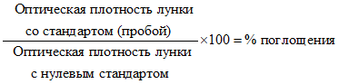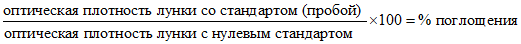 Оптическая плотность в лунках, измеренная на планшетном фотометре при 450 нм, обратно пропорциональна концентрации определяемого антибактериального препарата в исследуемых образцах.