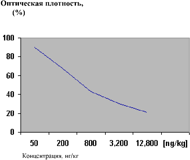 Оптическая плотность в лунках, измеренная на спектрофотометре (ридере) при 450 нм, обратно пропорциональна концентрации этанилэстрадиола в исследуемых образцах.