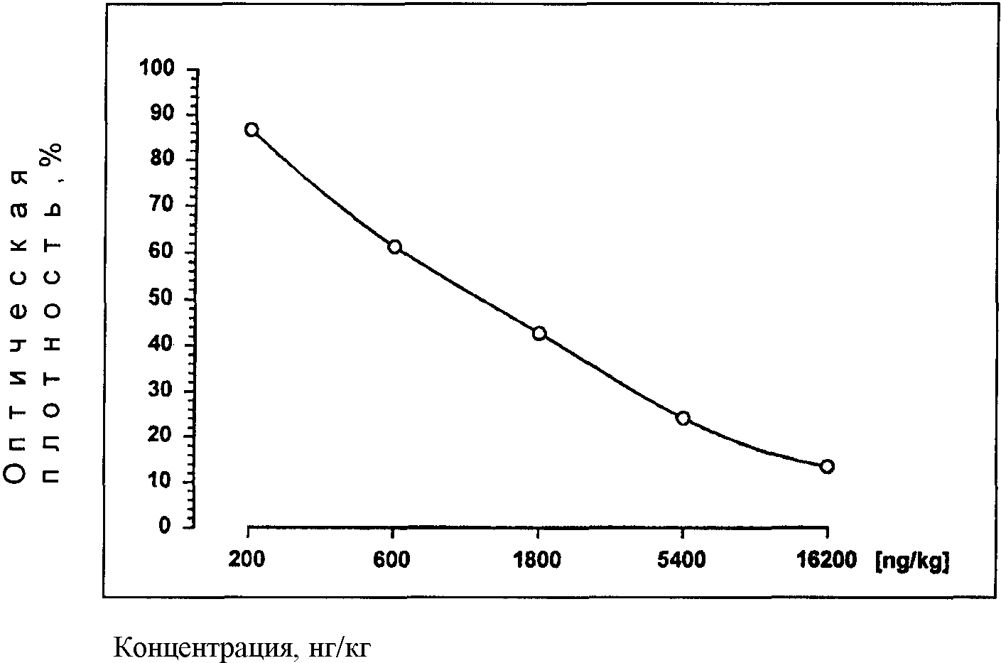 Концентрация тренболона в исследуемых растворах в нг/кг (ppt) считывается калибровочной кривой соответственно относительному поглощению, измеренному вычисленному для этих растворов.