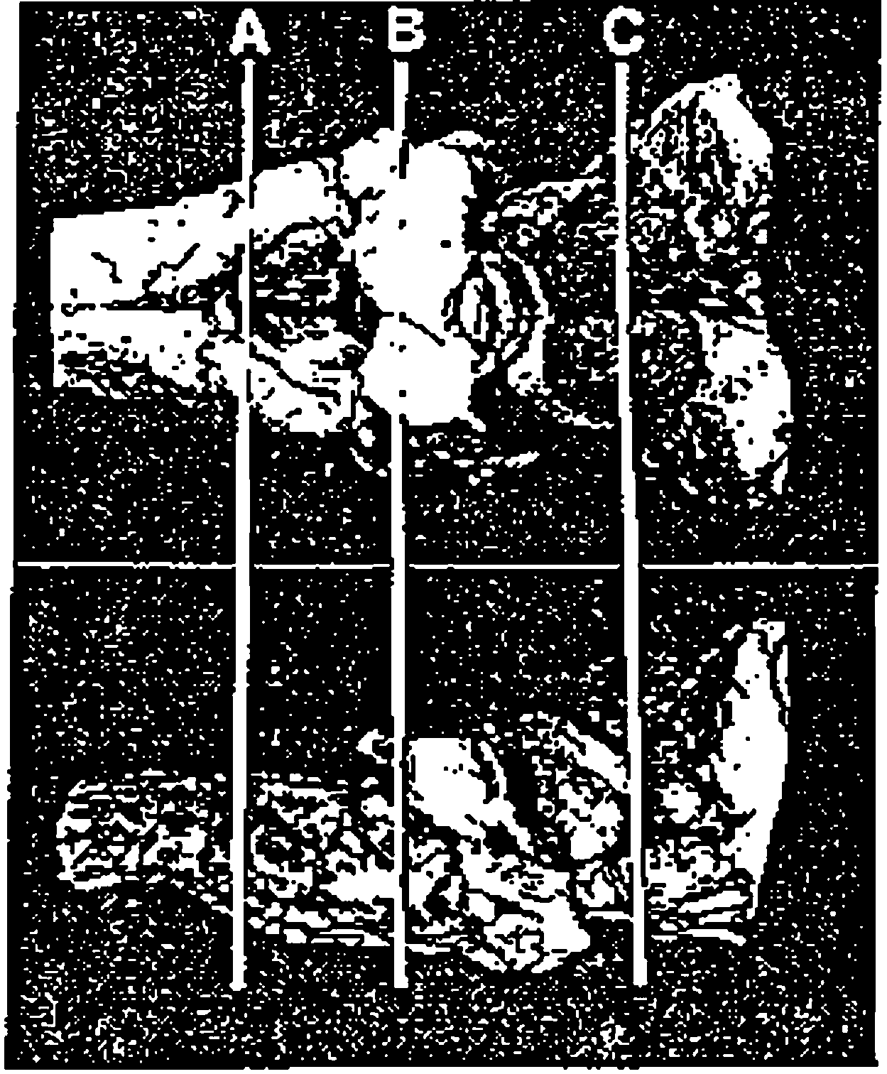 Рис. 2. Схема вырезки кусочков из стволовой части головного