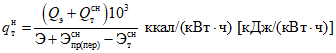 Фактические удельные расходы топлива на отпуск электроэнергии [г/(кВт·ч)] и тепла [кг/Гкал (кг/ГДж)] могут быть определены с использованием удельных показателей турбоагрегатов и котлов: