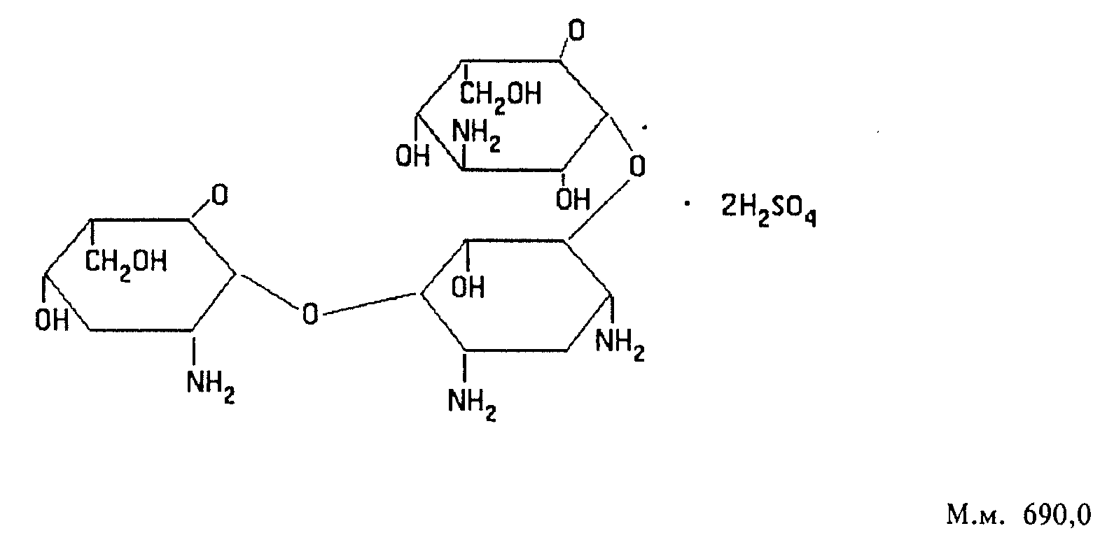 Тобрамицин - 0-/3-амино-3-дезокси-альфа-D-глюкопиранозил-(1...6)(-0-)2,6-диамино-2,3-6-тридезокси-альфа-D-рибогексопиранозил-(1...4))-2-дезокси-стрептамин сульфат.