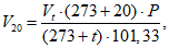 V20 - объем воздуха (л), взятый для анализа и приведенный к стандартным условиям по формуле (см.