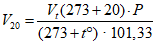 Приведение объема воздуха к температуре 20°С и давлению 760 мм рт.ст. проводят по следующей формуле: